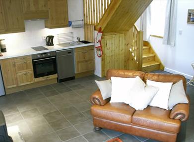 The second cottage has 2 bedrooms and a shower room upstairs, with an open plan ground floor, similar to cottage one, including a washing machine in the kitchen.